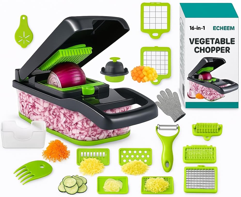 Cortadora de Verduras con 6 Cuchillas Intercambiables – Rebanadora, Rallador y Juliana de Frutas y Vegetales en Acero Inoxidable