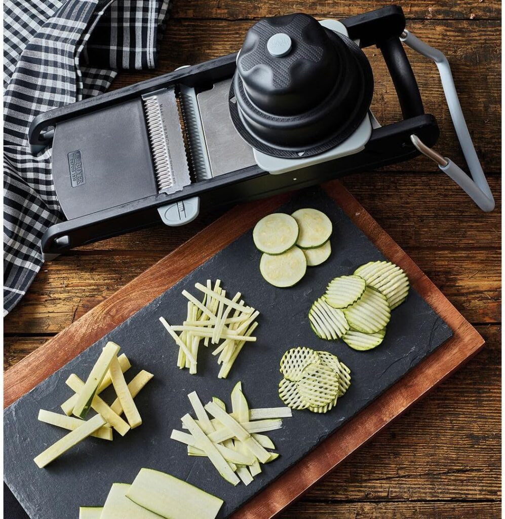 Mandolina de escala profesional con un innovador diseño: práctico y resistente para tu cocina.